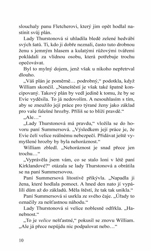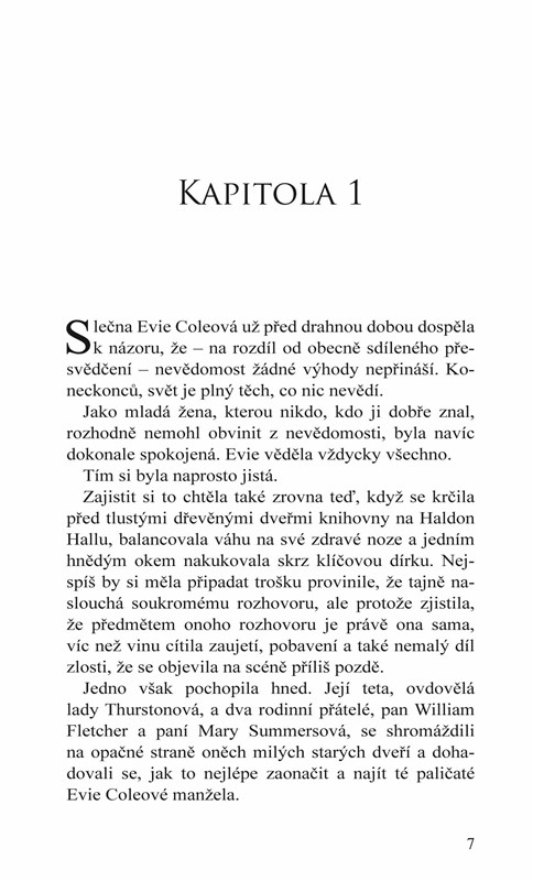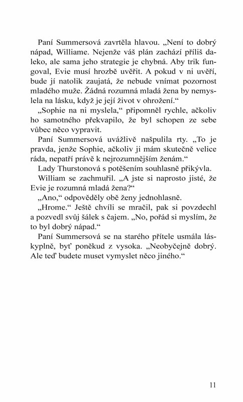 Slečna Evie Coleová výhružné dopisy nebere vážně. Mnohem víc se bojí, že ztratí srdce kvůli bývalému vrahovi, který ji má chránit. Jako bojovnice za práva žen se už dávno rozhodla, že se nikdy nevdá, ale čím víc McAlistaira poznává, tím víc se její přesvědčení otřásá v základech. I v tomto románu Alissy Johnson najdeme dobrodružství, pravý britský humor a jiskřivou konverzaci.