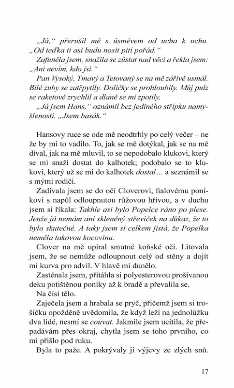 "Roku 1999 jsem se setkala s princem z pohádky. Byl to vysoký, tetovaný, hříšně hezký basák začínající rockové kapely Phantom Limb. Důležitější však bylo, že byl můj. Poznala jsem to hned ve chvíli, kdy po mně blýskl tím plachým úsměvem s dolíčky. A on to taky poznal. Hansel „Hans“ Oppenheimer nosil srdce na dlani a druhou rukou o mně psal verše.