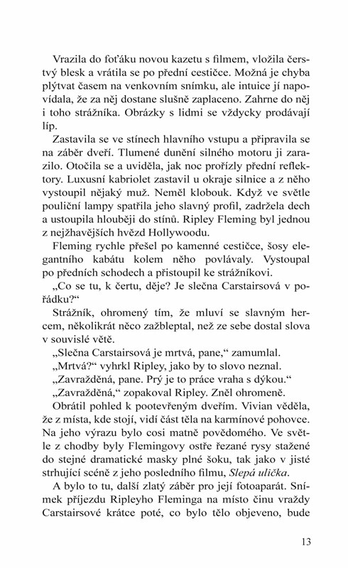 Po nafocení místa činu, na němž došlo k vraždě slavné herečky, poslední oběti zabijáka, jemuž tisk přezdívá "vrah s dýkou", si Vivian všimne děsivých podobností s úmrtími předchozích obětí - detailů, jež by zaregistroval jen další fotograf - detailů, které Vivian staví na vrcholek vrahova seznamu obětí. Nick Sundrige byl vždy schopen "vidět" věci, jež ostatní nevidí. Jeho talent, nebo jak tomu sám říká - jeho prokletí, spolu s temnou minulostí z něho udělaly samotářského, ale brilantního vyšetřovatele. Jako jediný, kdo může Vivian pomoct, je Nick poslán, aby ji ochránil. Společně zjistí, že vrah s dýkou má vazby na nablýskaný a oslnivý svět hollywoodské smetánky a vyšší společnosti. Je to nemilosrdný svět klamů a iluzí, jímž musejí Vivian a Nick projít - aby odhalili vraha, který se nezastaví před ničím.