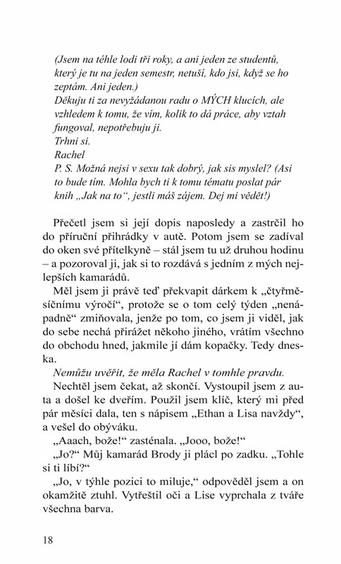 V posledním ročníku vysoké školy se však Rachel jednoho dne ukáže v Ethanově domě a požádá ho o dočasné ubytování. Žít spolu den za dnem je těžké a odolávat vzájemné přitažlivosti ještě obtížnější. Jedna vášnivá hádka změní všechno. Tedy téměř všechno.