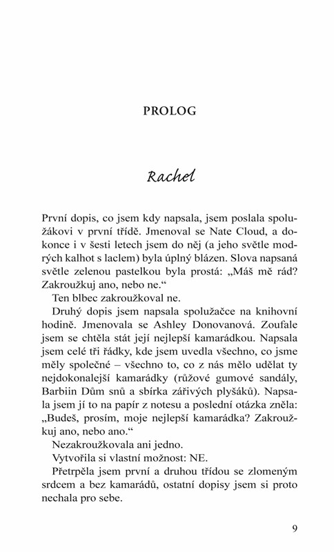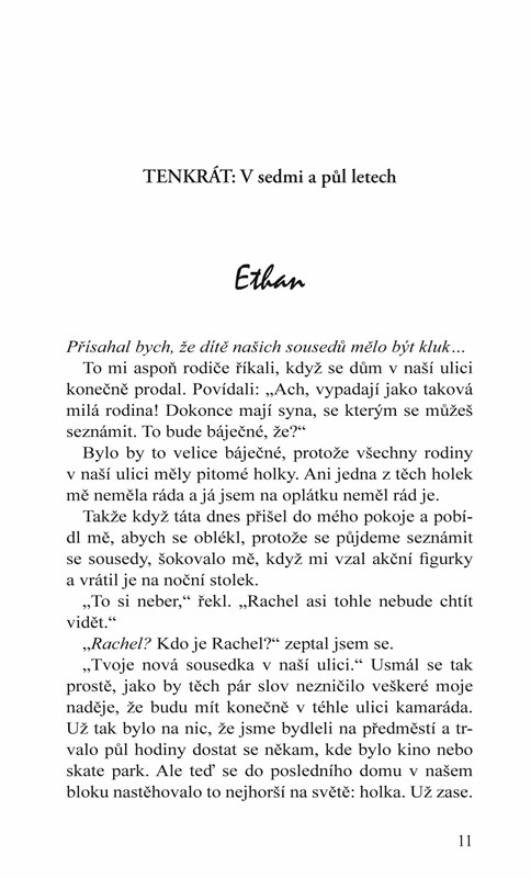 Ethan Wyatt nesnášel Rachel Dawsonovou už od sedmi let. Jeho sousedka je důvodem, proč téměř všechny jejich dětské hádky skončily tím, že jí něco zapálil (a ona jemu) nebo že ji shodil z kola (a ona jeho ze schodů). Udala ho, když porušil večerku. On ji prásknul, že měla v pokoji kluka. Tak to mezi nimi pokračovalo celou střední školu a před odchodem na univerzitu si přísahali, že už spolu nikdy nepromluví.
