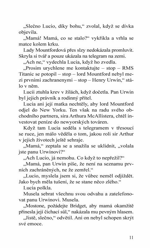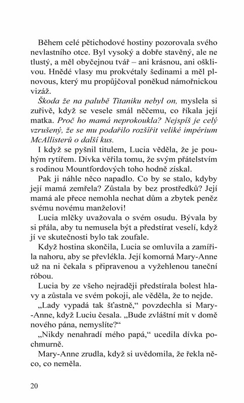 Lucia Mountfordová si žije jako v bavlnce, dokud se její život jednoho jarního dne neobrátí zcela naruby. Její otec zemře, matka se znovu provdá a k dovršení všeho se rodina náhle ocitne na mizině. Luciin otčím si v zoufalé situaci půjčí značnou sumu peněz od lorda Wintertona, pohledného muže s prachbídnou pověstí, a dívka ke svému zděšení zjišťuje, že se za to má ona stát nejprve jeho sekretářkou a později i manželkou. Její matka vážně ochoří a Lucia zůstane zcela napospas plánům svého otčíma, proti nimž je zcela bezmocná.