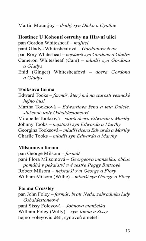 V sídle Hartington Manor ve vesničce Little Moseley se i letos Therese, lady Osbaldestoneonová, spolu s celou domácností těší z návštěvy svých kurážných vnoučat Jamieho, Georgea a Lottie. K dětem se tu neohlášeně a nečekaně připojí nejmladší a stále svobodný Theresin syn a dětmi milovaný strýček Christopher.