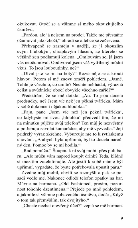Existuje jen jediné pravidlo, které odmítám porušit – žádné pletky s podřízenými. A mohlo mě napadnout, že někde bude háček. Vysoké podpatky, rudá rtěnka, bezchybná; byla to ta nejkrásnější žena na veletrhu kosmetiky – to už o něčem vypovídá. Ne že bychom si později na hotelovém pokoji povídali. Jen jedna noc, ovšem to jsem netušil, jaké překvapení na mě čeká v pondělí ráno v práci.