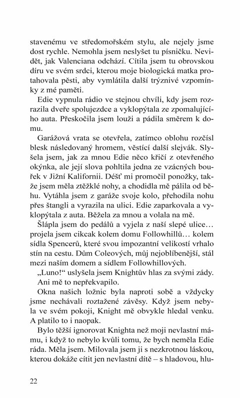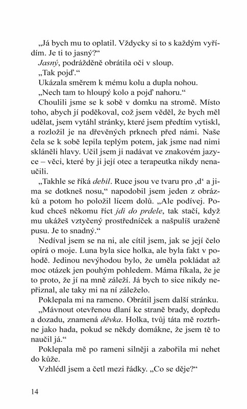 Luna Rexrothová je všemi milovaná stydlivka. Milá. Obětavá. Laskavá. Falešná. Ale pod tím se skrývá holka, která přesně ví, co chce – a je to jeden kluk z dětství, který ji naučil nadávat ve znakové řeči. Který ji naučil se smát. Žít. Milovat.