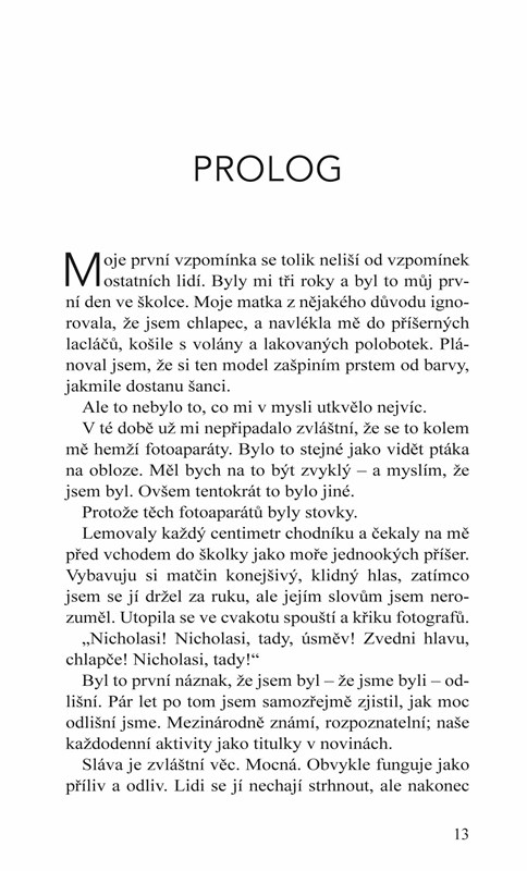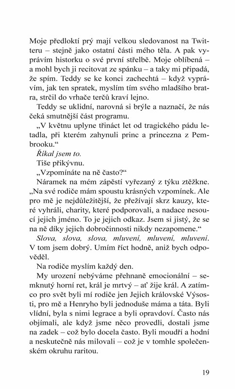 "Nicholas Arthur Frederick Edward Pembrook, korunovaný princ z Wessca, alias Jeho královská Žhavost, je okouzlující, ničivě pohledný a nestydatě arogantní. Jak by taky nebyl, když se před ním celý život všichni klaní.