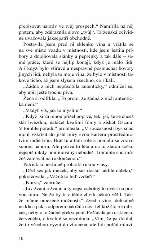 Dostat v pravou chvíli kopačky by nemělo být nic zásadního. Jenomže falešný vztah s Patrickem je tak reálný, jak to Norah nikdy nezažila. Co má holka dělat, než zahodit scénář a navrhnout novou verzi made in Hollywood?