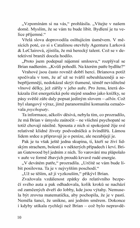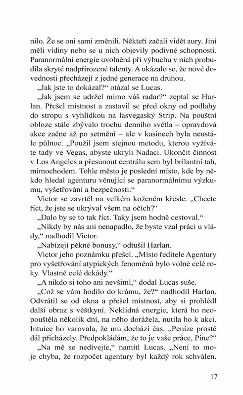 Něco takového Olivia nečekala, když se upsala k programu nabízenému seznamovací agenturou. Nemá však příliš na vybranou, protože její paranormální vyšetřovací firma pracuje pro záhadnou Nadaci a Victor Arganbright, její ředitel, trvá na tom, aby Harlanovi pomohla. Má to jen jediný háček – nikdo nezná skutečné Harlanovy úmysly. Jeho otec kdysi řídil Nadaci jako mafiánskou organizaci a Harlan se měl stát jeho nástupcem. Je vysoce pravděpodobné, že se Harlan vrátil, aby se ujal svého dědictví.