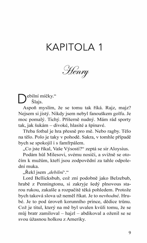 Vítejte v pořadu Spřízněné duše: královská edice. Dvacet nejkrásnějších dívek s modrou krví usiluje o Henryho pozornost. Zaujme ho jen jedna. Sarah Mirabelle Zinnia von Titebottumová. Tichá a nenápadná. Naprosto Henryho okouzlí svým laskavým duchem a prostou krásou.