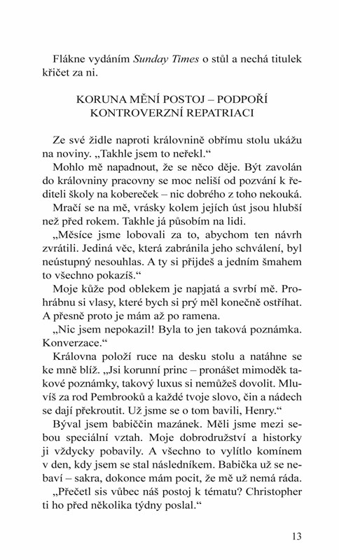 Někteří muži se narodili zodpovědní, na některé byla zodpovědnost uvalena. Henry John Edgar Thomas Pembrook, princ z Wessca, právě dostal do svého urozeného klína obrovský náklad zodpovědnosti. A nezvládá to dobře. Královna Lenora nakonec souhlasí, že mu věnuje trochu prostoru. Jenže princ si chce hrát, a to rovnou v televizní reality show.