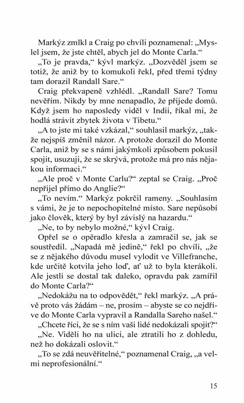 Craig se rozhodne, že využije své pověsti okouzlujícího gentlemana, a vydá se pátrat mezi evropskou smetánku.