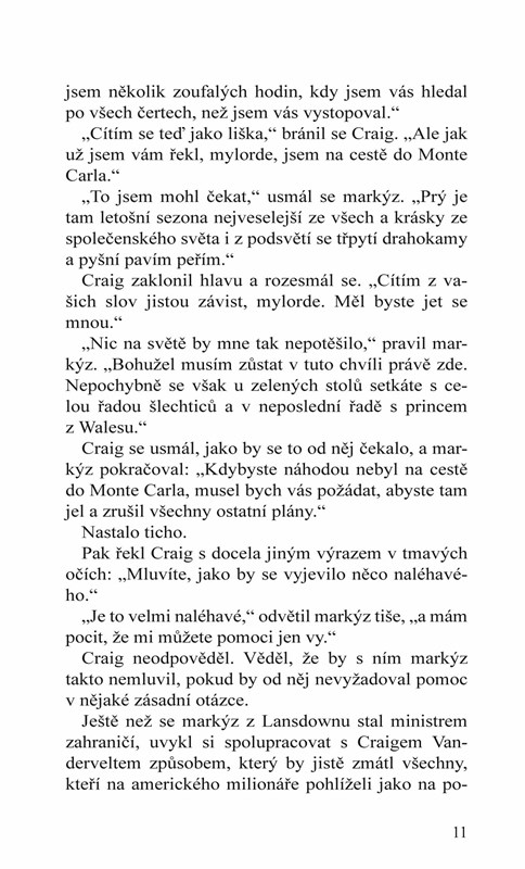 Kdo je krásná Aloya a proč se ve společnosti pohybuje pouze v doprovodu lorda Neasdona? Jaké nebezpečí ohrožuje křehký smír mezi Británií a Ruskem? A podaří se Craigovi v jádru pletich a zrady odhalit pravou lásku?