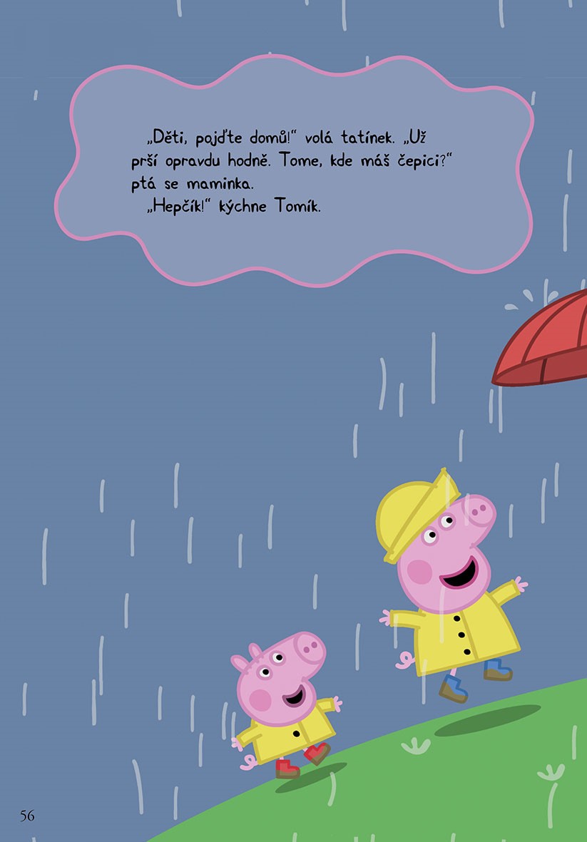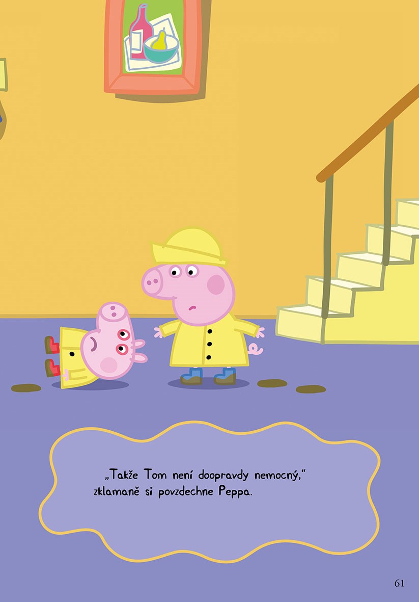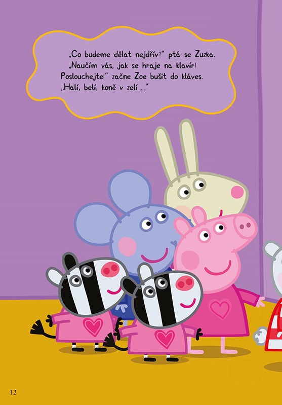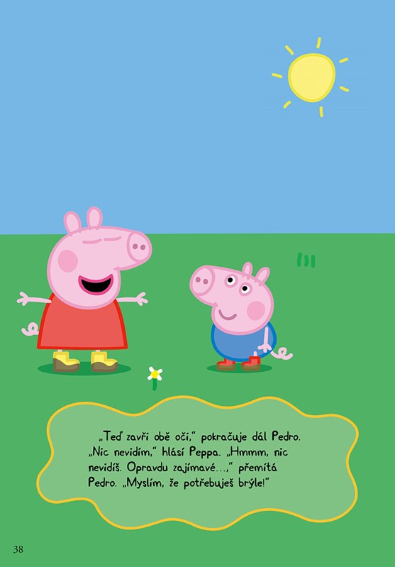 Prasátko Peppa má pro vás novou knížku plnou zábavných příhod a zážitků. Kromě Peppy na vás čeká celá rodina Prasátkových a všichni zvířecí kamarádi. Pojďte si s nimi hrát a zažívat nejedno veselé dobrodružství. Přečtěte si, jak Peppa prvně spala u kamarádky, jak si byla u pana optika pro nové brýle a jak Tomík dostal rýmu.