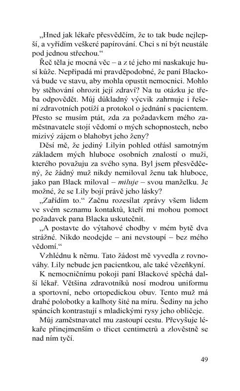 Vdovec Kane Black nikdy na svou zesnulou manželku Lily nezapomněl. Zármutkem po ní zcela otupěl… až jednoho dne spatří na ulicích Manhattanu ženu, jež oplývá nenapodobitelnou krásou jeho dávno mrtvé lásky. Odvede ji do svého luxusního bytu, kde ji střeží jako oko v hlavě, obklopenou stále živými vzpomínkami na Lily.