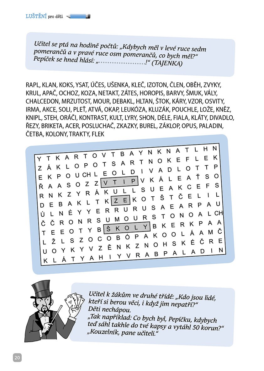 Křížovky, osmisměrky, sudoku či spojovačky a k tomu navíc vtipy, díky kterým pobavíš celou třídu. Roztoč mozkové závity a pusť se do toho!