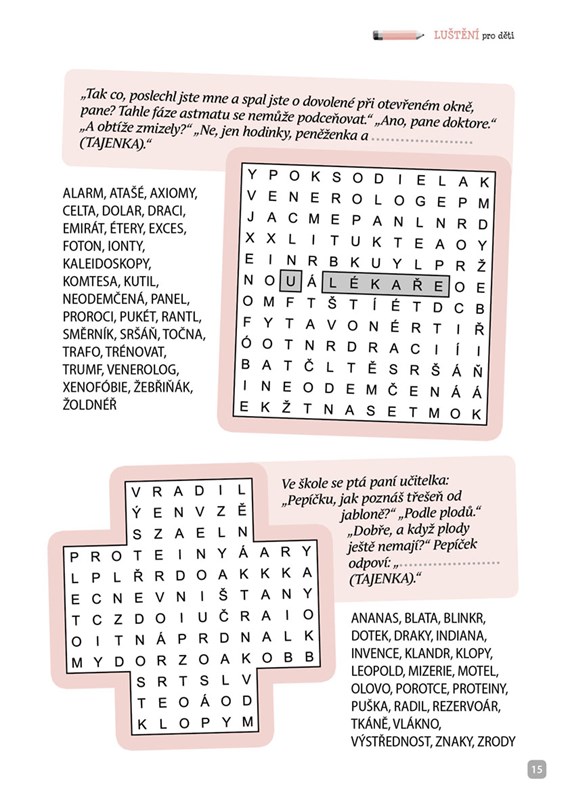 Křížovky, osmisměrky, sudoku či spojovačky a k tomu navíc vtipy o zvířatech, škole, Pepíčkovi i Hruv...