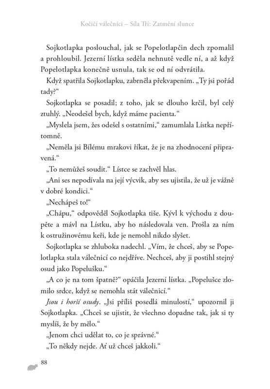 Zatímco lesními kočkami zmítají pochybnosti, Sojkotlapka, Cesmíntlapka a Lvíčkotlapka jsou odhodláni...