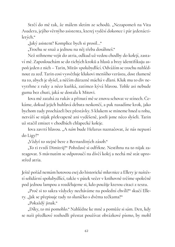 Vitus Asader sice ví, jak se udržet vysoko ve školní lize, jenže odhalit vraha je něco docela jiného. Zvlášť pro někoho, jehož minulost je tak temná, že ji skrývá i sám před sebou. Povídá se, že za tím stojí někdo ze studentů, jenže jak najdete vraha mezi vrahy?