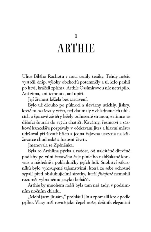 Ve městě Bílý Rachot má Arthie Casimirová pověst nejobratnější zlodějky – a také sběratelky tajemství. Její prestižní čajovna se po setmění proměňuje v krvárnu, která se stará o potřeby obávaných upírů. Když se ale podnik ocitne v ohrožení, musí Arthie uzavřít dohodu s nebezpečně svůdným protivníkem. Spolu s bandou odpadlíků se pokusí infiltrovat do srdce elitní upírské společnosti Athereum… brzo však dojde k sérii temných odhalení. Bude dost silná, aby překazila spiknutí, které je hrozbou pro celý svět?