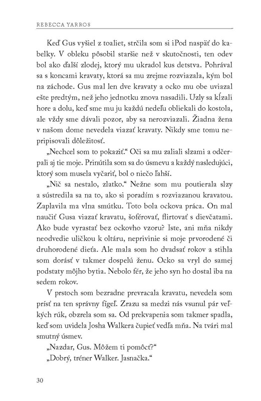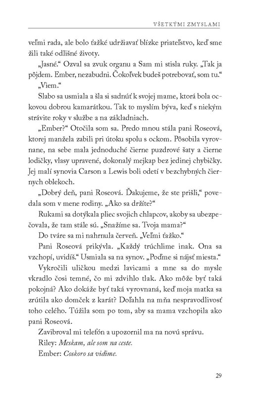 Táto kniha ma chytila hneď v úplnom úvode, pretože autorka sa s ničím nepárala a hodila nás rovno do deja. Prostredníctvom Ember sledujeme, ako málo stačí, aby sa človeku zmenil celý svet. Aby bola bližšie pri rodine a pomohla im prestupuje na inú školu, hľadá riešenia tam, kde by to mala robiť ich matka a snaží sa držať pohromade, aj keď nevládze. V tomto musím naozaj povedať, že sa autorka špičkovo vyhrala s hrdinkou a celkovo s témou straty a smútkom.