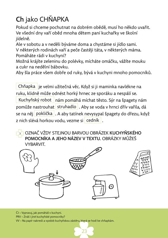Pracovní sešit připravily zkušené pedagožky Věra Janáková a Petra Jurčová, obrázky jsou z pera Jaroslava Němečka, autora legendárních postav ze Čtyřlístku.