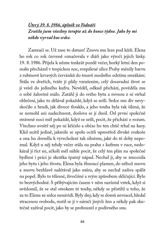 Nejdřív si uvědomila, jak moc jí třeští hlava. Potom se jí sevřel žaludek nevolností a nakonec se jí začala vybavovat včerejší noc. Ema vyskočila z postele a běžela na záchod. To ty prášky smíchané s alkoholem. Jenže co byla nevolnost proti vzpomínkám, které jí teď postupně explodovaly v hlavě jako světlice ve tmě. Vynořovaly se jedna za druhou a Emu zaplavila hrůza. Co jsem to provedla? Bože!