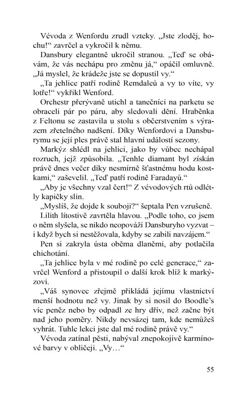 Jack Faraday, markýz z Dansbury, je bohatý, má titul a je hříšně přitažlivý. Skandální chlípník, který okouzlil dlouhou řadu dam, konečně potkává svůj perfektní protějšek v podobě slečny Lilith Bentonové, známé jako „Ledová královna“. Ta chce obnovit dobré jméno své rodiny a hodlá se výhodně vdát. Takže když se jí začne dvořit Jack, je rozhodnuta jej ignorovat. Pak je ale jejich náhodná účast u záhadné vévodově smrti donutí stát se spiklenci, aby očistili svá jména… a chladné pohrdání náhle ustoupí žhavé touze. Nyní Lilith připadá, že Jackovy vášnivé ukradené polibky jsou příliš lákavé, než aby jim odolala...
