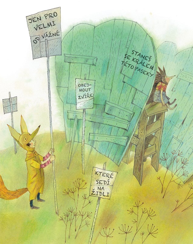 Uf, to je tedy ale těžký oříšek. Zdá se totiž, že žádný takový hrdina neexistuje. Chudák ježek, byl z toho hrozně zklamaný. Lehl si na zem, dal všechny čtyři tlapky od sebe a už se mu ani nechtělo vstát. Ještě, že v lese žije lišák Fíla! S liščí mazaností se hned pustil do řešení ježkova trápení.