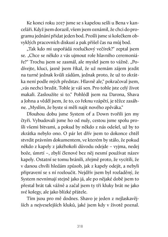 Strhující autobiografie hudebníka, skladatele a zpěváka, jenž proslul především jako frontman kapely System of a Down.
