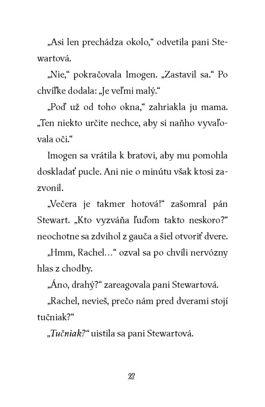 Ani jeden z nich však nečaká, že sa tučniak v ten večer objaví pred ich dverami – a na chrbte má batoh s menovkou Einstein. Nový rodinný priateľ pomáha Arthurovi vyjsť z ulity a podporuje Imogen v jej amatérskej detektívnej záľube.
