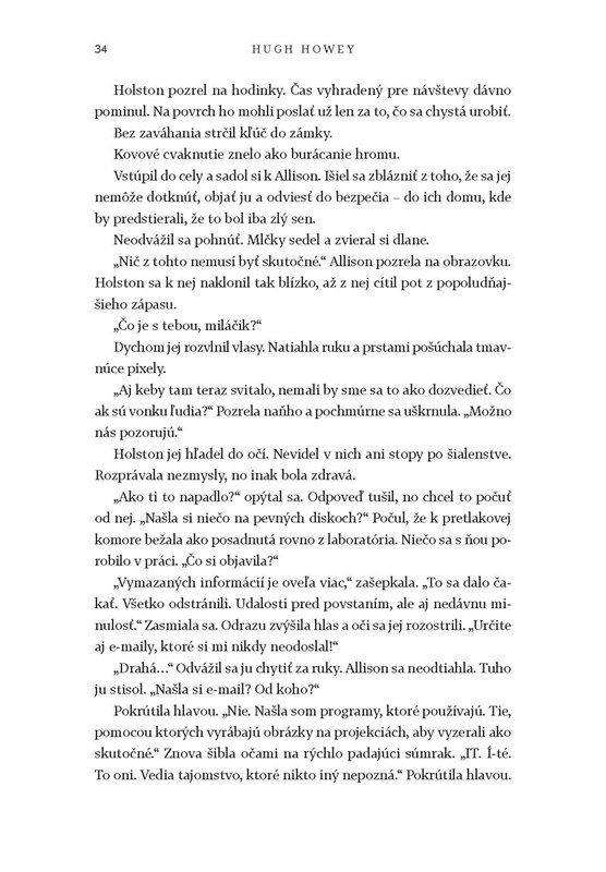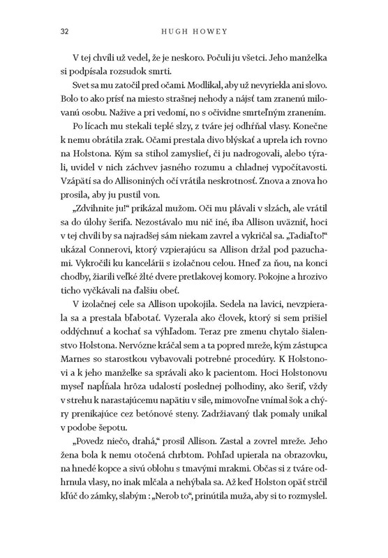 Mrazivý príbeh ľudí, obmedzené priestory, vedomosti, zahmlievanie skutočností, boj proti systému, prostredie zničeného sveta, prepracované postavy, ktorým dá autor poriadne zabrať, nečakané zvraty a dávkovanie napätia a odhalenia tajomstvá Sila do poslednej strany.