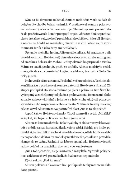 Ale niekedy je dobre vybočiť a skúsiť niečo iné. Tak ako som to mala pri knihe Silo.
