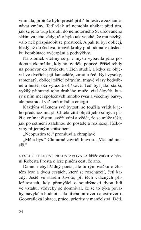 Pro Lydii není loučení s milovaným mužem žádným sladkým utrpením. Jako vlkan ukrytý mezi lidmi je zvyklá být sama – dokud jí osud nedopřál lásku, o jaké si ani netroufala snít. Daniel jako agent tajné složky vlády Spojených států vždy očekával, že zemře předčasně. Jen předpokládal, že to bude v terénu – ne na nemocničním lůžku v laboratoři. Protože mu rychle ubývá čas, odmítne lék, aby se mohl soustředit pouze na to, aby Lydia našla svůj klan. Musí využít všechnu svou sílu, aby ochránil svou lásku… i kdyby to znamenalo, že bude žít dál bez něj.