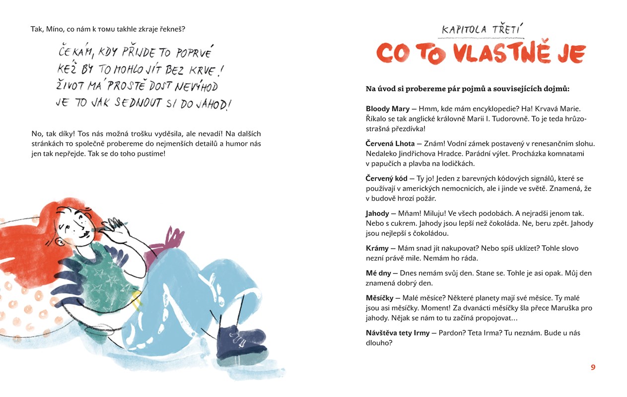 Co je TO? TO je horor! TO je krvák! TO nahání strach. Bububu! Kdepak, řeč není o nervydrásajícím filmu podle Kinga. TO je totiž také nejčastějším krycím názvem pro menstruaci. Menstruační cyklus je nedílnou součástí holčičích životů a přestože je přirozený a dokonce životadárný, zpočátku často vyvolává smíšené pocity, obavy i stud. Holky, hoďte úzkost za hlavu a otevřete si TO. Společně s praštěnou zrzkou Mínou se dozvíte vše, co by vás o menstruaci mohlo zajímat!