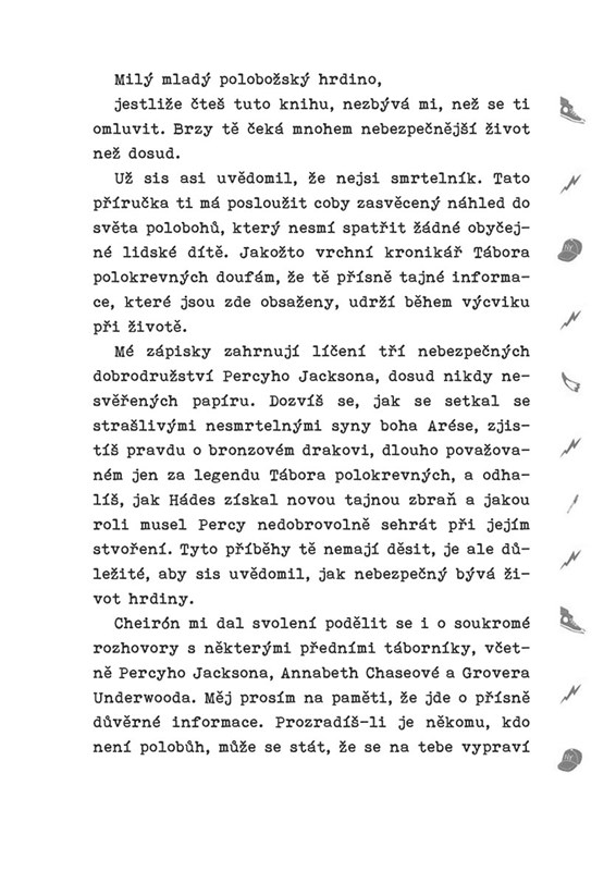 Jak přežít setkání s Arésovými syny v zoo? Jak zvládnout rozzuřeného Titána? Na tyto a další životně důležité otázky vám poskytne odpovědi originální příručka z univerza Percyho Jacksona. Kromě toho vás čekají také příběhy a rozhovory s Percym, Groverem, Annabeth a dalšími oblíbenými postavami. Nechybí ani mapka, luštění a další bonusový materiál. Staňte se s tímto nepostradatelným průvodcem odborníkem na Percyho svět!