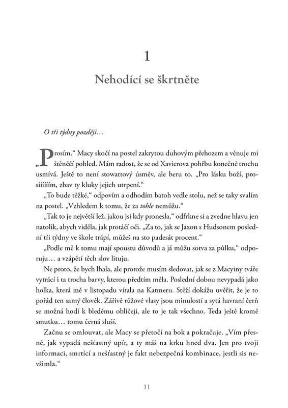 Nejspíš jsem dosáhla bodu zlomu. Jako by studium na Katmerské akademii nebylo už tak dost stresující, můj vztah se z komplikovaného změnil na hotovou katastrofu. Do toho se Krvana rozhodla, že všechny šokuje. A další rány osudu nepřestávají přicházet. Jaxon je chladnější než aljašská zima a Kruh se kvůli mé blížící se korunovaci rozštěpil. Ještě něco? No jasně – s Hudsonem nám hrozí doživotní vězení chráněné nezrušitelnou kletbou. Nadchází čas složitých rozhodnutí… a obávám se, že ne každý ho přežije.