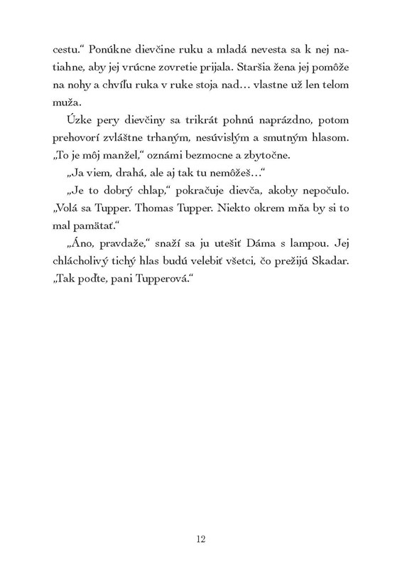 Čoskoro odhalí, že do únosu je zapletená slávna Florence Nightingaleová a hlavnou stopou je tajomná krinolína. A tak musí Enola opäť vyskakovať z okien, lúštiť záhadné šifry, dokonca používať svoju dýku. Rozhodne s pátraním neprestane, skôr než bude úbohá pani Tupperová v bezpečí svojho domova.