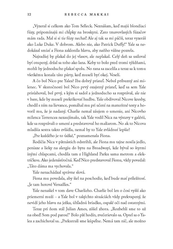 Je rok 1985 a Yale Tishman, riaditeľ rozvoja umeleckej galérie v Chicagu, sa práve chystá urobiť úžasný skok v svojej kariére – priniesť galérii ako dar výnimočnú zbierku malieb z dvadsiatych rokov 20. storočia. No hoci jeho kariéra rozvitá, v spoločnosti vládne atmosféra úzkosti a strachu zo šíriacej sa epidémie aidsu. Jeho priatelia umierajú jeden po druhom a po pohrebe Yaleovho kamaráta Nica sa vírus dokonca dostane i do jeho bezprostrednej blízkosti. Čoskoro jedinou spriaznenou dušou, ktorá mu ostane, je Fiona, Nicova malá sestra.