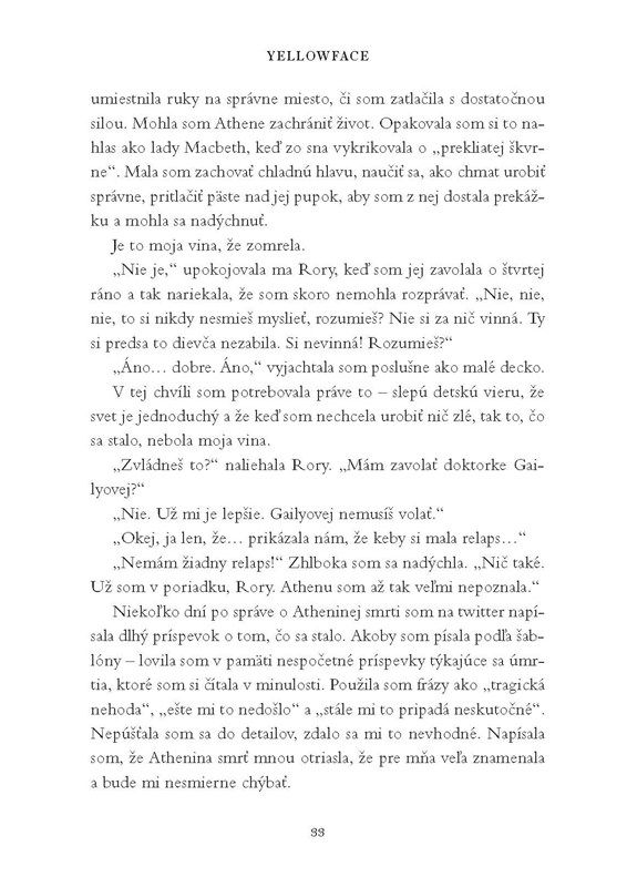 June román upraví a pošle svojmu agentovi ako vlastné dielo, premenuje sa na Juniper Song a ani z novej autorskej fotografie sa nedá presne určiť, akú má etnicitu. Ten kus histórie si predsa zaslúži, aby ho ktosi vyrozprával, nech už je rozprávačom ktokoľvek – a zoznam bestsellerov New York Times dáva June za pravdu.
