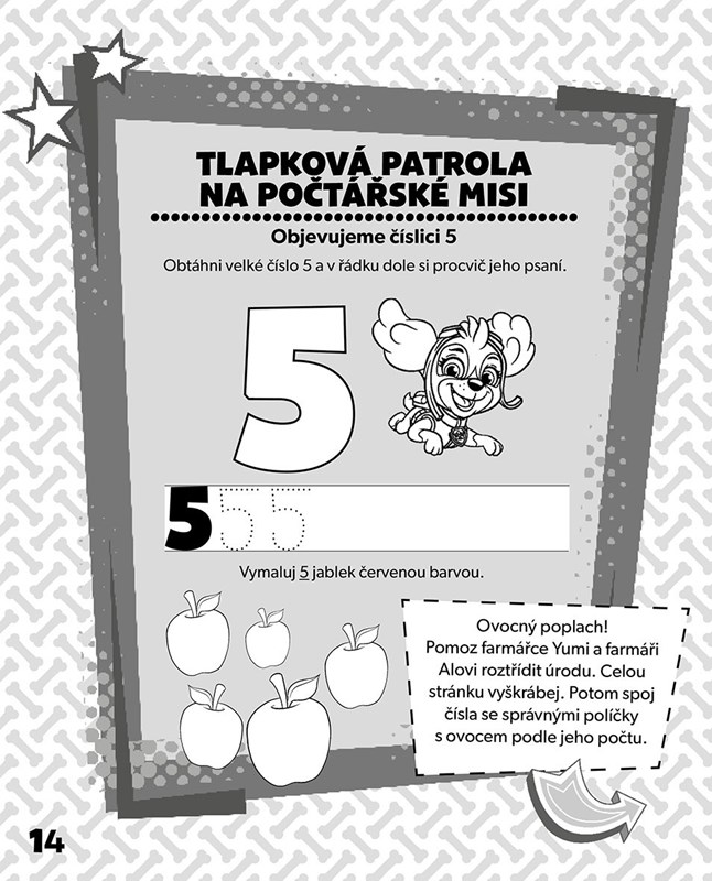 Vydejte se s Tlapkovou patrolou na početní misi a odhalujte obrázky v knížce setřením černé vrstvy přiloženým bambusovým škrabátkem. Na každé stránce vás čekají hravé úkoly, se kterými si procvičíte počítání, číslice a první příklady. Na pomoc vám vždy přispěchají oblíbené tlapky! Díky nim bude každý úkol hračka a učení prvních čísel skvělá zábava.
