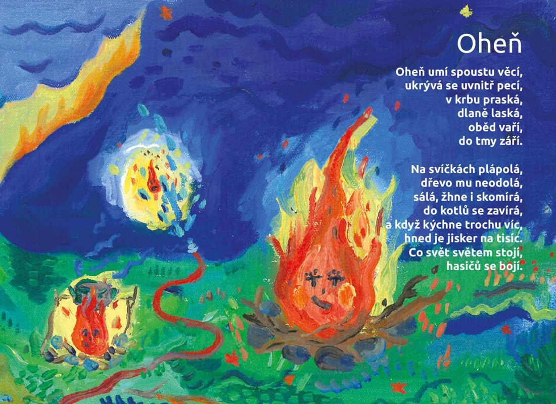 Déšť, oheň, sucho, mráz i duha... Veršované leporelo plné živlů.