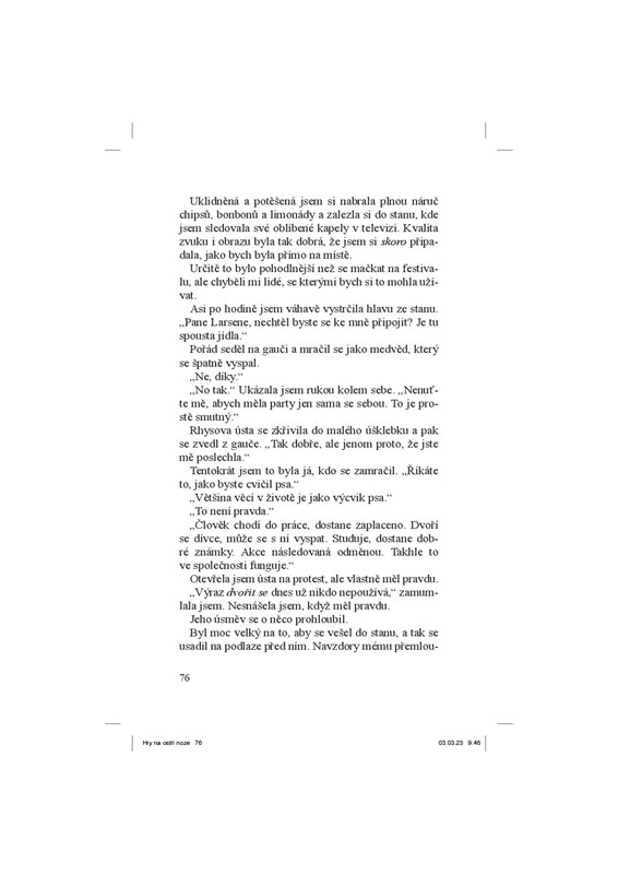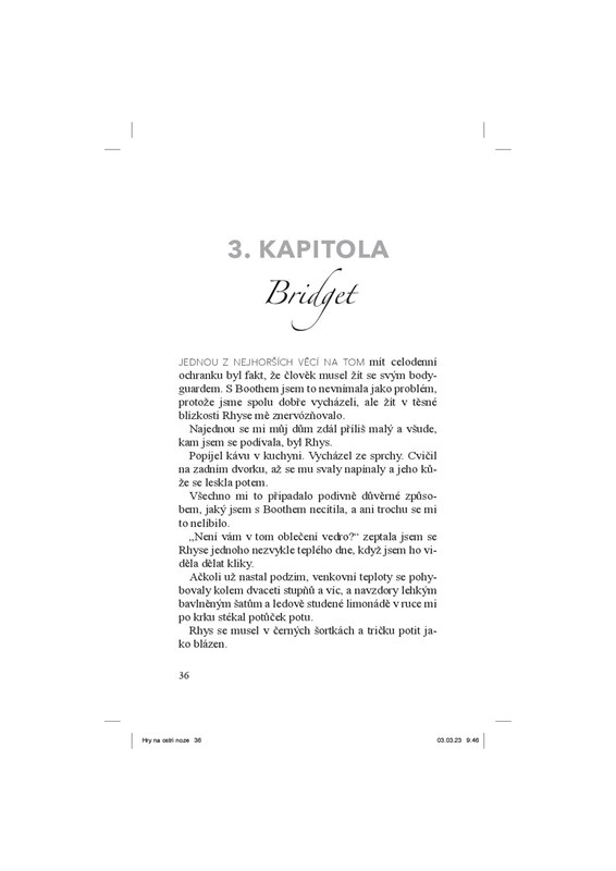 Stoický, zádumčivý a arogantní elitní bodyguard Rhys Larsen má dvě pravidla: 1) Chránit své klienty za každou cenu. 2) Nezaplést se s nimi citově. Nikdy.