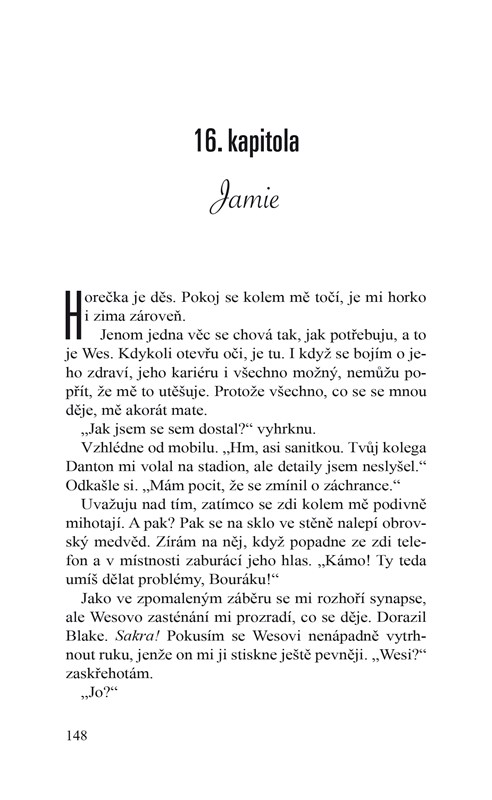 Jamie Wese nade všechno miluje. Jenže tajit vztah je na nic. Tohle není život, jaký si Jamie představoval, a obavy, aby jejich tajemství nevyšlo na povrch, si začínají vybírat svou daň. Nijak nepomáhá, že v nové práci to nejde tak hladce, jak Jamie čekal, ví však, že dokud má Wese, všechno zvládne. Aspoň že ve svém bytě můžou být sami sebou. Nebo snad ne? Když se do stejné budovy nastěhuje Wesův nejvlezlejší spoluhráč, hrozí, že pravda vyjde na světlo.
