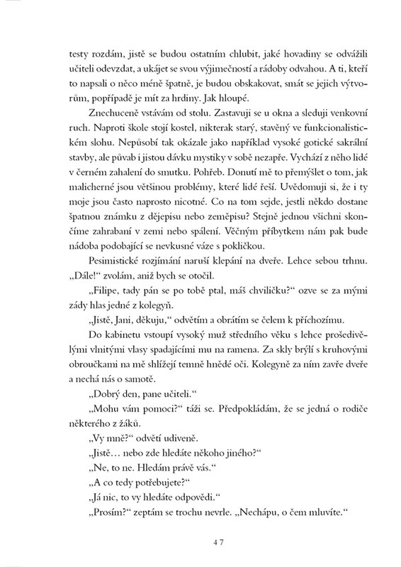 Poklidný život mladého učitele začnou narušovat podivné události – vidiny tajemného starce, zvláštní sny a nevšední setkání. To vše stojí na počátku cesty, kterou by si hlavní hrdina nikdy nedokázal ani představit. A přestože není zrovna dobrodružné povahy, zvědavost mu nedovolí odmítnout vydat se po ní a nahlédnout za obzor.