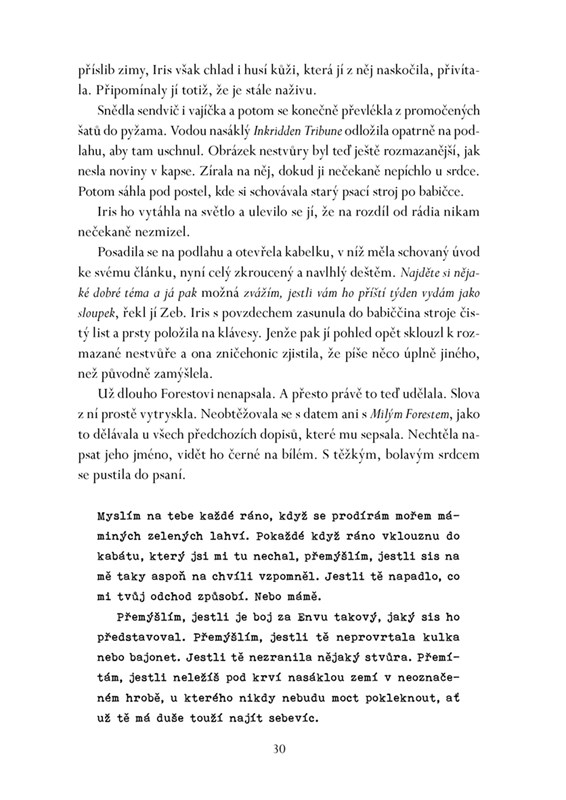 Po staletích spánku rozpoutali bohové další válku. Osmnáctiletá Iris chce udržet svou rodinu pohromadě, jenže její bratr je na frontě a ona s matkou živoří čím dál víc. Proto se Iris rozhodne získat povýšení v novinách, o nějž bojuje s odměřeným, ale pohledným kolegou Romanem. Aby zahnala své strachy, píše bratrovi dopisy na starém psacím stroji a zasouvá je pod dvířka, kde záhadně mizí... a končí u Romana, který má stejný magický psací stroj. Přetrvá jejich pouto i v hrůzách božské války o osud lidstva?