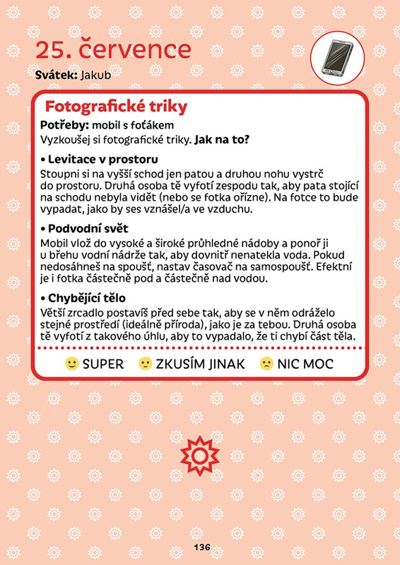 Unikátní osobní diář, který promění každý den v nové dobrodružství! Pro výtvarné kreativce, milovníky vědy, nebo nadšené sportovce, těm všem naše kniha otevře dveře do světa originálních zážitků a nekonečné zábavy.