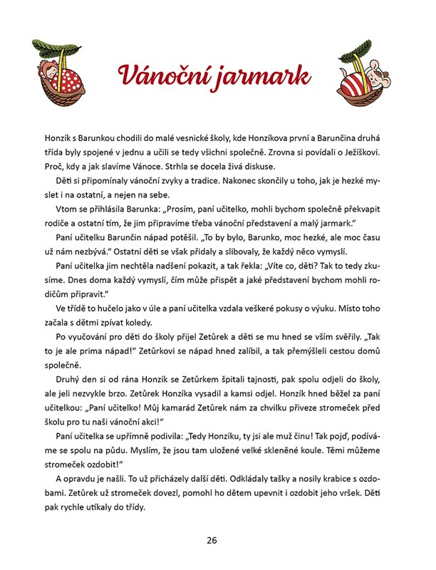S našimi kamarády se rozhodně nudit nebudete. S Honzíkem, Zetůrkem a Barunkou pomůžete ovečkám, uspořádáte vánoční jarmark, naučíte se vyrobit vánoční ozdoby, upečete perníčky, vykouzlíte ledovou zahradu, setkáte se s Mikulášem a čertem a prožijete báječný Štědrý den.