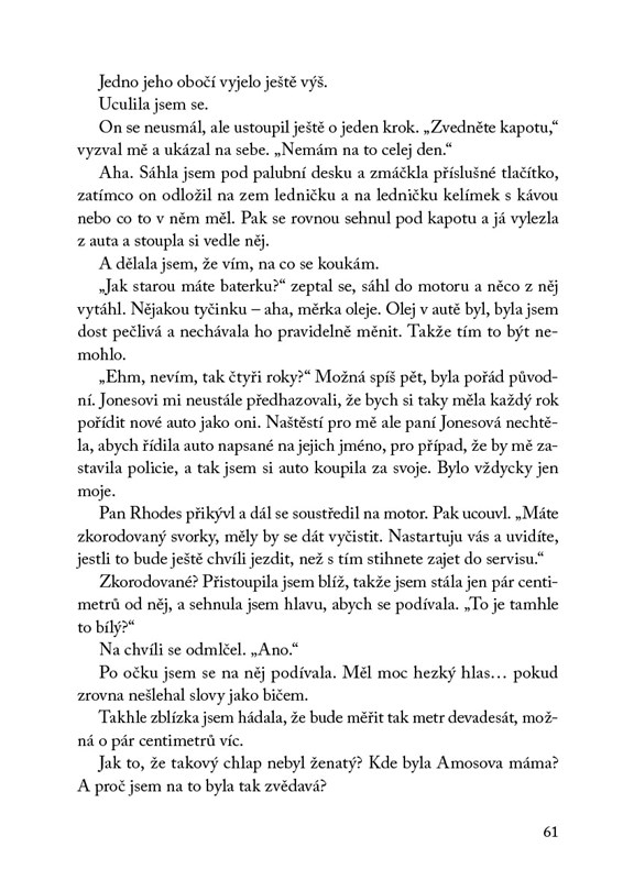 Ztráta milovaných lidí je vždy těžká a Aurora ví, že návrat na místo, které kdysi nazývala domovem, bude náročný. Po rozchodu s dlouholetým přítelem ale doufá, že pobyt v zapadlém horském městečku dokáže vyléčit její zlomené srdce. A setkání s jejím domácím, který bydlí naproti, by hojení mohlo urychlit… Jenže nevrlý Tobias Rhodes nedůvěřuje cizím lidem a od Aurory si drží odstup. Ta se ale jeho chováním nedá odradit. Může pomalu pěstované přátelství přerůst v lásku, jaká vykvete jen jednou za život?