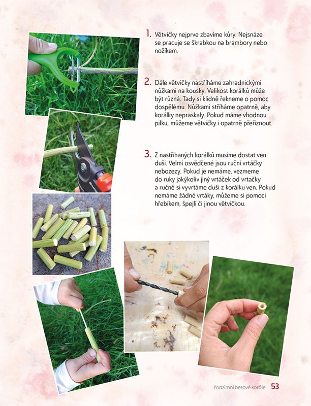 Najdete tu postupy na výrobu kašírovaných masek, jednoduchých loutek z klacíků, podzimních bezových korálů, originálního balicího papíru potištěného vlastnoručně vyrobenými tiskátky, batikovaného nákrčníku, vyšívané kresby i obrázku kouzelné chumelenice pro svatomartinského koníka.