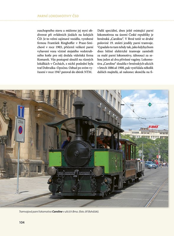 Aktualizované a doplněné vydání úspěšného titulu obsahuje atlas parních lokomotiv ČSD a seznamuje čtenáře s historií parního provozu na našem území, hlavními konstrukčními celky parních lokomotiv, jejich ošetřováním a údržbou, s číselným systémem označování lokomotiv, s parními vozy i speciálními parními lokomotivami. Kniha přináší rovněž zajímavé informace o úzkorozchodných drahách a koněspřežkách, které jsou spojeny s počátkem dějin železniční dopravy.